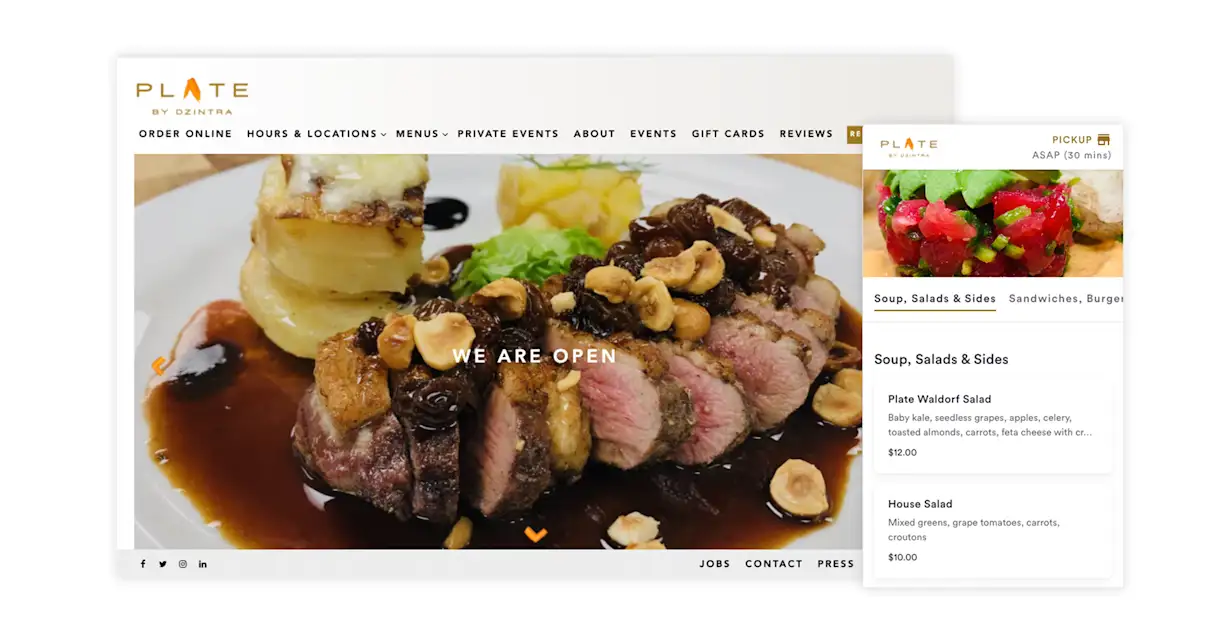 To do this, many restaurants are creating best-in-class websites that meet the challenges — and seize the opportunities — of the current moment. They're investing in custom design to leave a strong, brand-first impression on future diners. They're setting up online commerce stores to diversify revenue and fight back against third-party commissions. And they're integrating websites with other technology to streamline workflows and operate with fewer, higher-paid staff members.