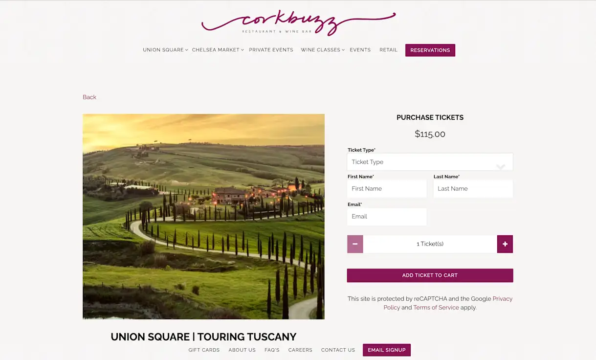 Another creative option for restaurants is to host ticketed events and classes. Corkbuzz uses their knowledgeable staff to offer educational experiences. The restaurant and wine bar hosts a variety of 90-minute sessions on wine regions that are led by their sommeliers.