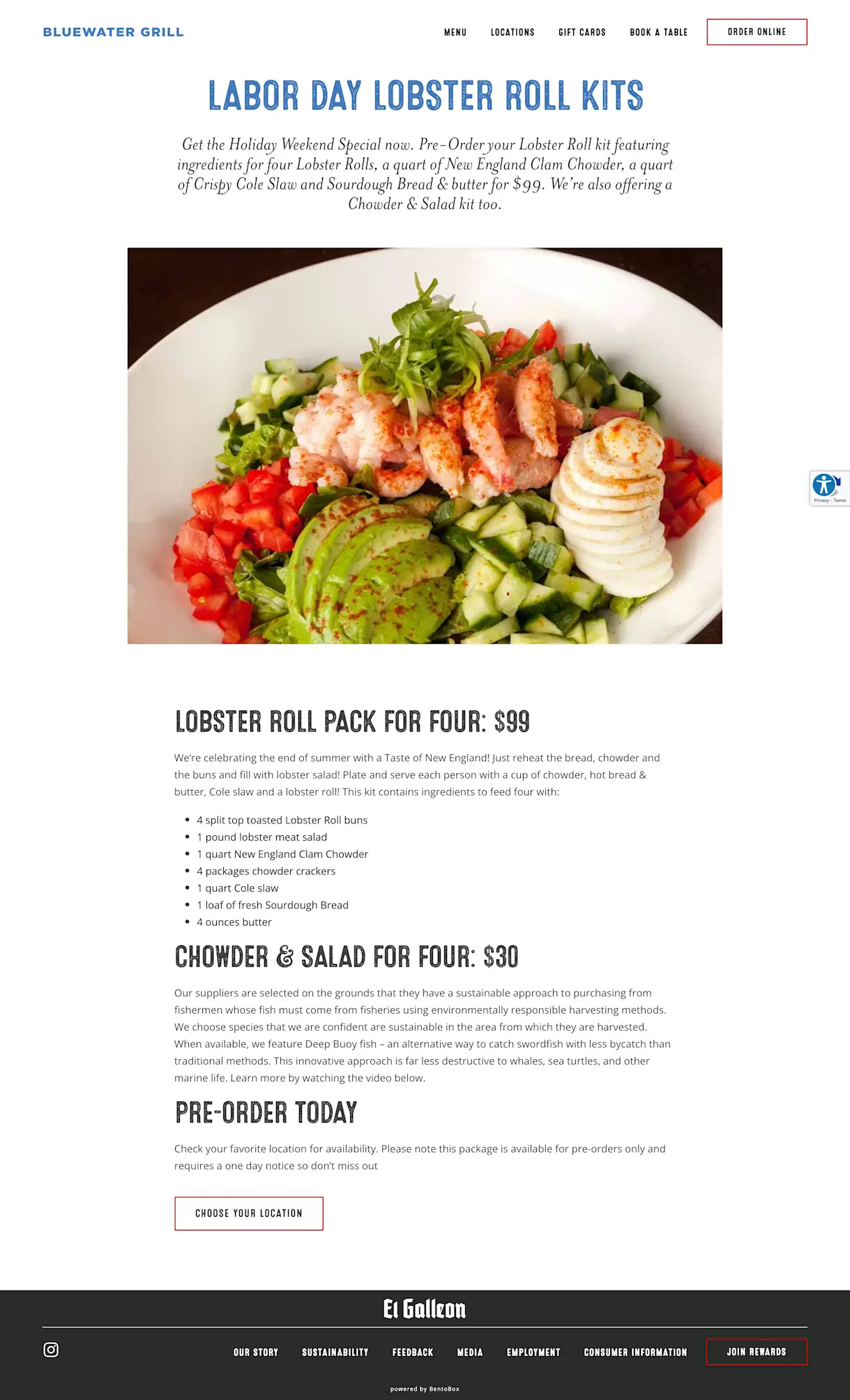 At Bluewater Grill, there are lobster roll kits for pre-order ahead of Labor Day. Customers can pick up the kits in person at any of the restaurant’s eight locations.