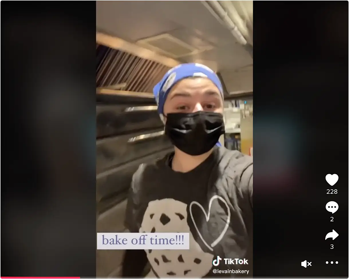 A chance to break down the barriers between your staff and your guests, it’s worth handing the account password over to employees for staff takeovers and employee spotlights. In the example above, Levain Bakery had one of its bakers use a popular TikTok video format, walking the audience through a day in her life as an employee.