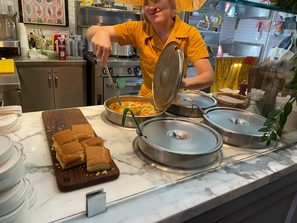 The regularly changing, mostly vegan soup offerings range from the famous Coconut Chickpea to Split Pea, alongside her housemade cornbread.