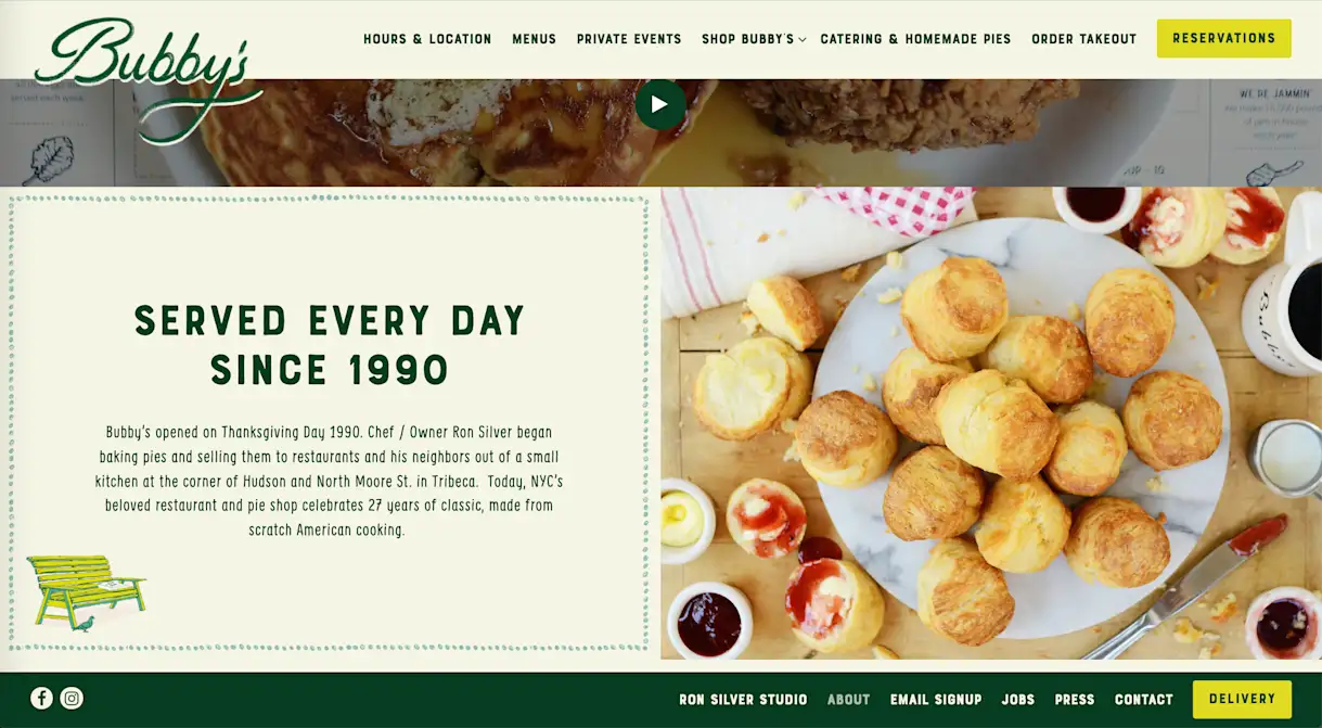 Rather than calling itself a “New York institution” or using the word "reliable," Bubby’s uses its headline to make a specific claim — ”Served every day since 1990” — that demonstrates those ideas. This captures more attention and paints a richer, more vivid picture of its history and role in the community. The rest of the description supports this by adding details to the story of its founding and explaining that even three decades later, its scratch approach to cooking remains the same.