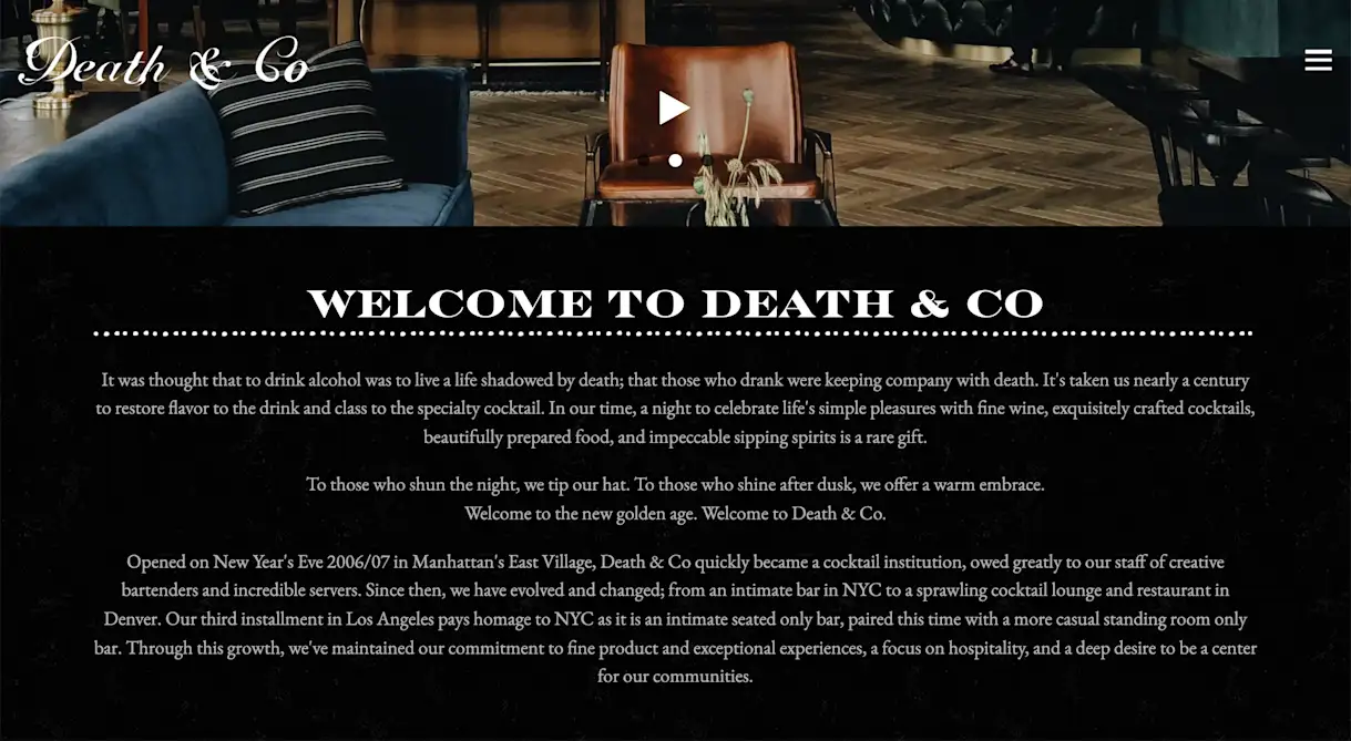 Death & Company's description reads like a call to adventure. In fact, it also reads like one of the most famous ads of all-time, Apple's "Here's to the Crazy Ones," which didn't so much sell computers as it sold the brand's DNA. In similar fashion, this description is a brooding ode to alcohol and nightlife; to people who order cabs out instead of in at 1:00 AM. This is an effective approach for a cocktail lounge, which relies more on emotional than logical motivators to get people through the door.