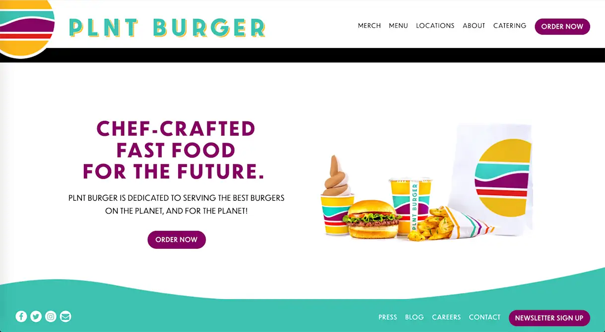 Earlier, we mentioned the importance of separating "need to have" messages from "nice to have" messages. No restaurant on this list does that better than PLNT Burger, which communicates its value prop and establishes a cheeky brand voice in two short lines of copy (three if you count its name). Rather than bogging down its homepage with details and specifics, the plant-based fast-food chain shares a simple, compelling message about what it offers and why, along with a clever play on words. If users want to learn more, the About page linked in the main navigation has them covered.