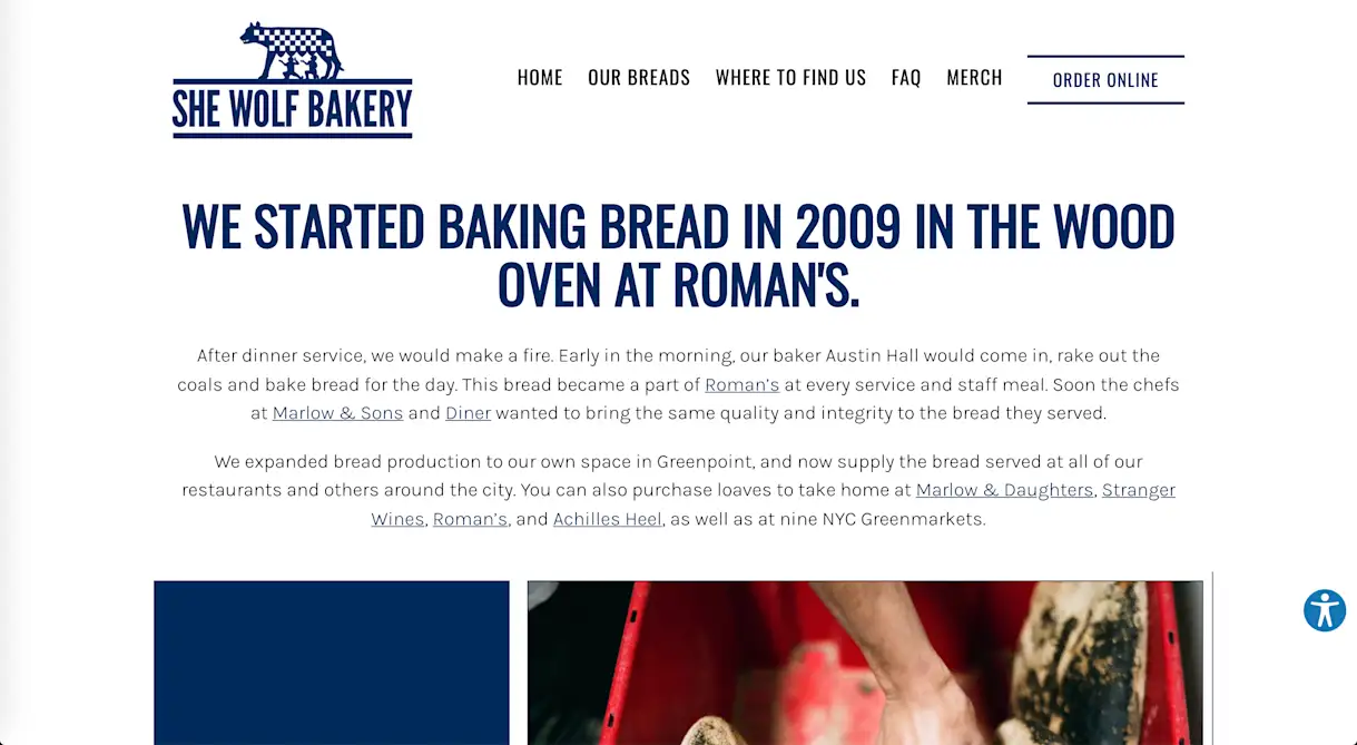 This description reads like an origin story, and it's written in a way that perfectly suits the brand. The first-person perspective, natural word choice and short, active sentences make it feel like the restaurant's owners are speaking directly to the audience through the screen. This mirrors the underlying theme of the story: that She Wolf Bakery grew through connection and community, and that you can trust every loaf to have a personal, artisan touch.