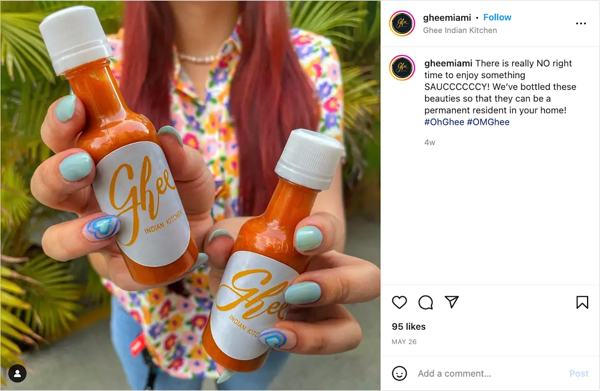 Some patrons — particularly those who tend to order online — might not even know that their favorite restaurant has merchandise they can buy. From t-shirts and hats to seasonings and bottled sauces, Instagram is where a restaurant can share these items’ availability to a group of followers who are the most likely to make the purchase.