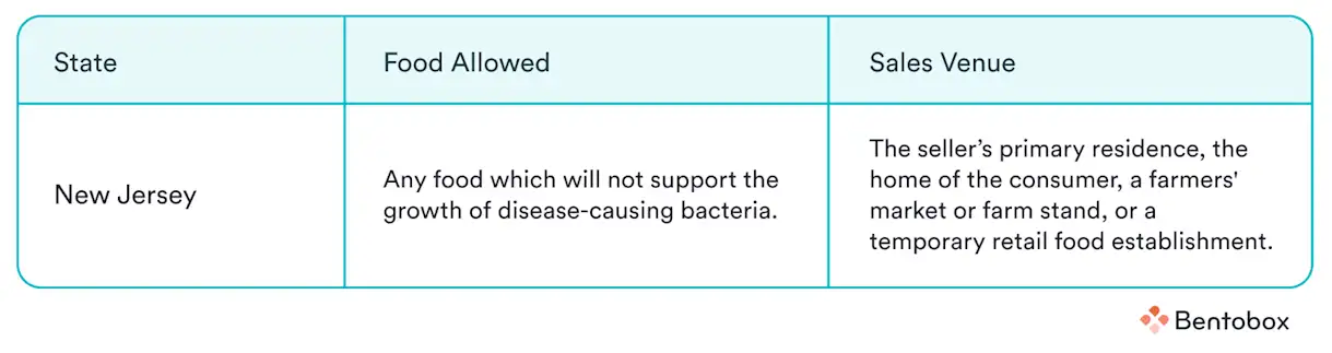 More stringent states, like New Jersey, require food preparers to obtain a Cottage Food Operator Permit and pass inspections.