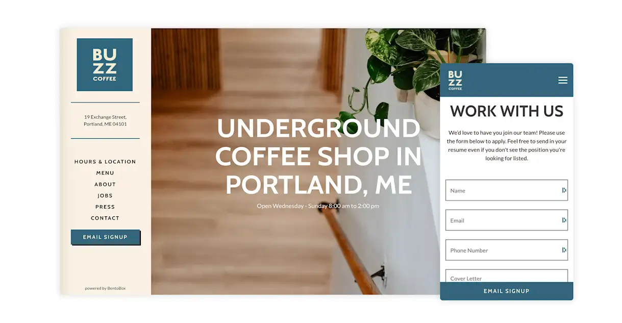 When guests arrive at Buzz Coffee's website, they are greeted with an alluring line of copy branding it an "underground coffee shop." The site doesn't elaborate on what that means, which adds to the intrigue and tacitly positions it as a place only locals and insiders would know about. Elsewhere on the website, guests can view the no-frills drink menu, which includes only eight items and no descriptions — another sign of confidence and intrigue. On a more practical level, the website also has a jobs page where workers can submit applications, removing a manual step from the increasingly tiring job of hiring restaurant staff.