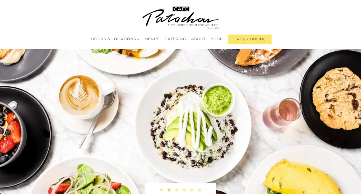 Cafe Patachou has such a friendly, congenial vibe that it has long been called a "student union for adults." Owned by Martha Hoover, a four-time James Beard Award semifinalist for outstanding restaurateur, it has also been named among the nation's Top 10 breakfast spots by Bon Apetit. Its website design is sunny, colorful and full of food photography that captures the premium scratch cooking on its menu. The website also features a robust merchandise store that sells apparel, mugs, coffee and the restaurant's signature cinnamon-sugar blend.