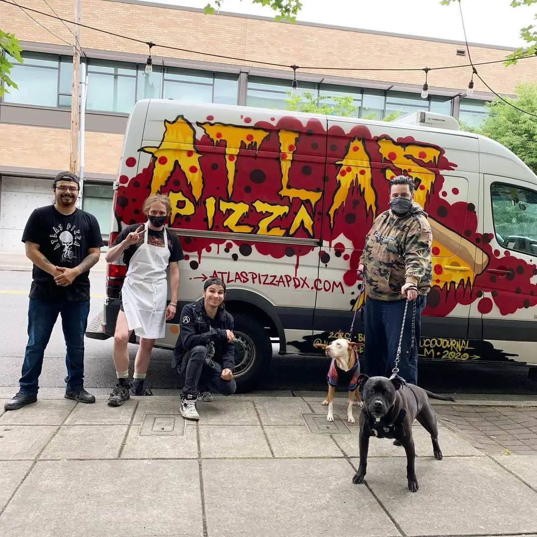 For this pizza restaurant, visual branding is an essential part of not only their concept, but the way they connect to a larger community of local food sellers. What better way to show off their creativity than by setting their name in bold, comic book-pizza writing on the side of their delivery van? It’s a to-go branding idea as memorable and distinctive as it is promotional.