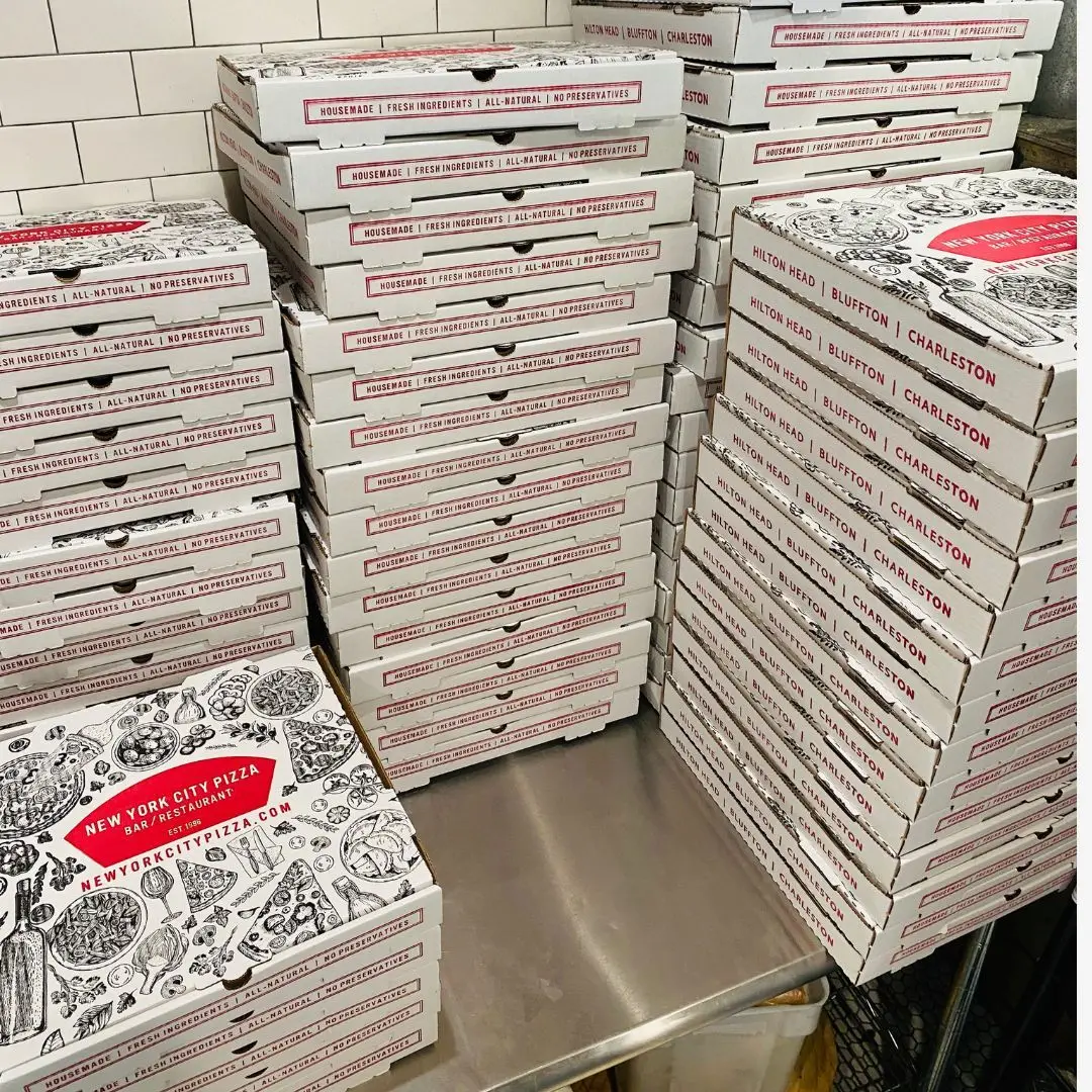 Never underestimate the power of a beautifully-designed box. Unlike the novelty of the interactive pizza box previously mentioned, this restaurant opted for a simpler concept done well: to cover their box with elegant line drawings that collage into a mosaic of an abundant, delectable pizza experience. Note specifically that the art doesn’t lean into the New York aspect of the brand — the explicit restaurant name does that job — but rather the more refined side of the cheesy, bready pleasures contained inside the box.