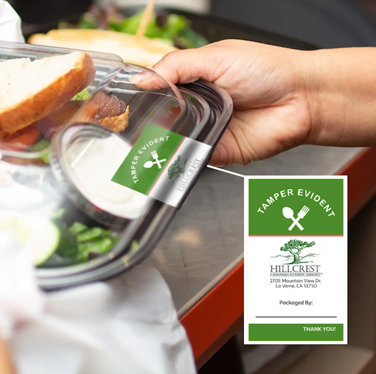 In the wide world of to-go packaging, not every food provider is a restaurant and not every message needs to be promotional. In the case of this retirement community, the goal of the packaging is to convey a sense of safety; in other words, to show the customer that the contents of the package have the stamp of approval of the brand. The “Packaged By” line is a great touch wrapping up a brand interaction that communicates safety, care, and close attention.