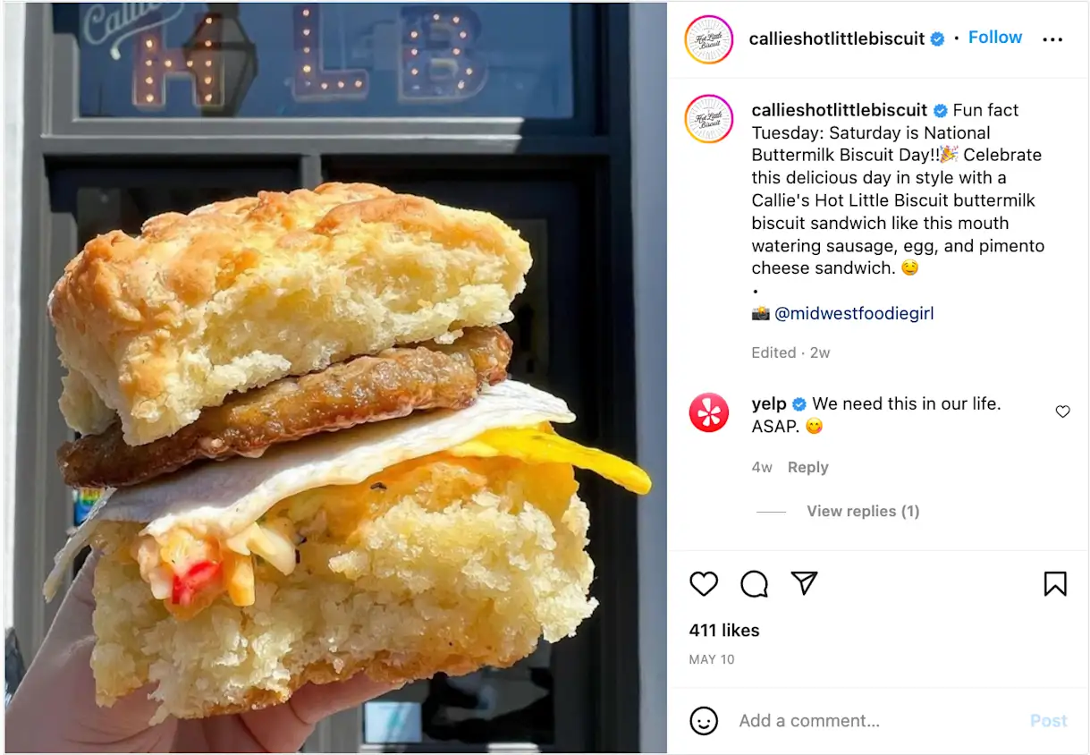Close-ups should be considered for menu items like pizza, desserts, fried chicken, sandwiches and — yes — biscuits. These photos also highlight a certain level of detail that might be missed if the photo is taken too far away. Individual ingredients and layers pop more on screen, leaving nothing to the imagination.