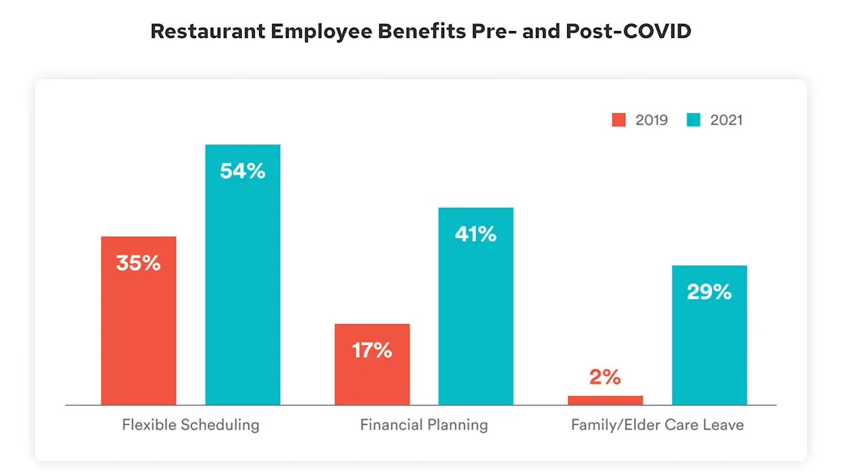 There’s good reason to believe this trend heralds a permanent shift in hospitality, aligning our industry with other industries’ hiring practices. After all, we don’t wonder when white-collar firms are going to stop offering health insurance as an incentive. The restaurants that differentiate themselves as employers today will be ahead of the curve when benefits are table stakes for hiring labor tomorrow.