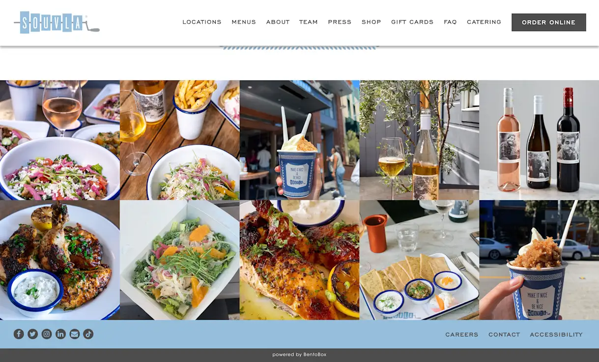 With integrations, Instagram content can also connect automatically to a restaurant's website, creating a dual purpose for the channel and adding more visuals to the restaurant’s page. San Francisco Greek fine-casual spot Souvla built its website with BentoBox, which offers this easy integration.