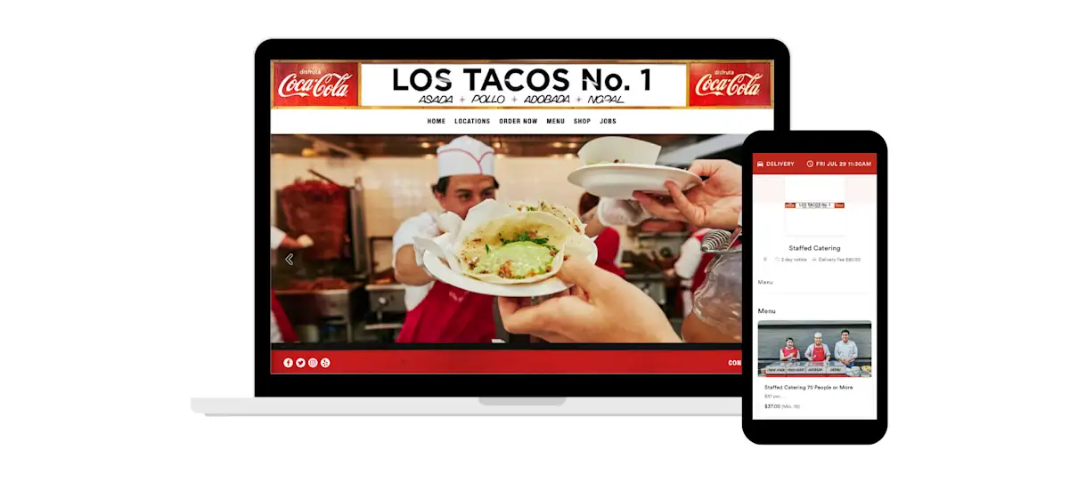 With five locations across NYC, Los Tacos No. 1 brings authentic Mexican tacos to the east coast. Its website captures visitors' attention with vintage-washed photography and vibrant bodega typography. Animated illustrations bring elements of its storefronts to life, breathing energy and personality into its online presence. In addition to helping visitors find a location near them, its website generates thousands of dollars per month via swag from its merchandise store and staffed catering options from its pre-order & catering store.