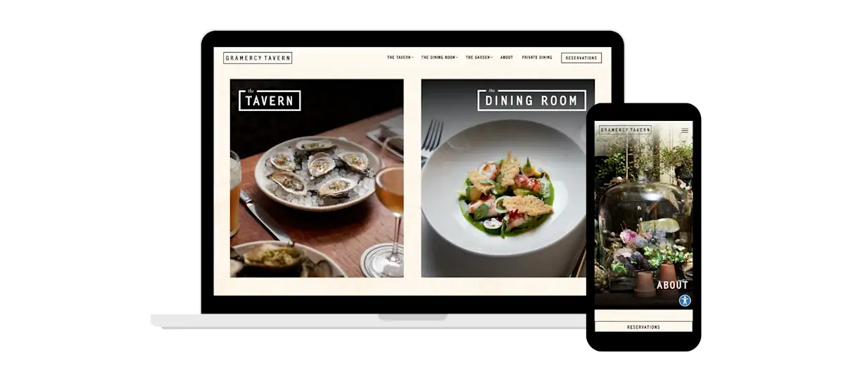 Union Square Hospitality Group operates several restaurants in New York City — all built on BentoBox — but Gramercy Tavern’s website stands out. Its clean and simple design matches the restaurant’s elevated dining experience, and high-resolution photography captures the refined beauty and execution of its menu. To help with navigation, its website separates its three dining experiences — The Tavern, The Dining Room and the Garden — as separate headers. This alleviates confusion by clearly explaining each area’s separate hours and menu offerings.