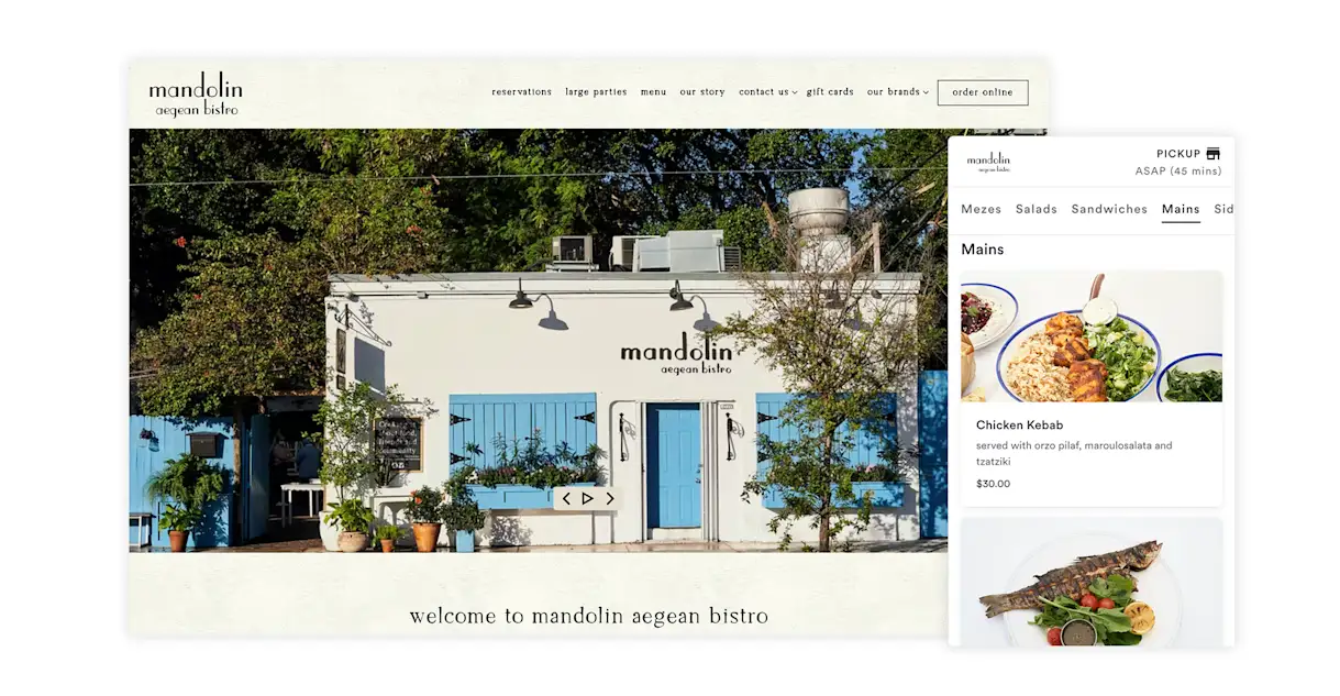 In addition to its delicious Mediterranean menu, Mandolin Aegean Bistro is known for its lush outdoor patio, which is famous for putting Floridians in a "Greek vacation" state of mind. Its website captures this feeling with big, sunny photos of the outdoor space, juicy produce and plated seafood, along with a charming European-style font. But despite the acclaim for its on-premises experience, Mandolin also prioritizes takeout and delivery, driving tens of thousands of dollars in monthly revenue with direct online ordering through its website.