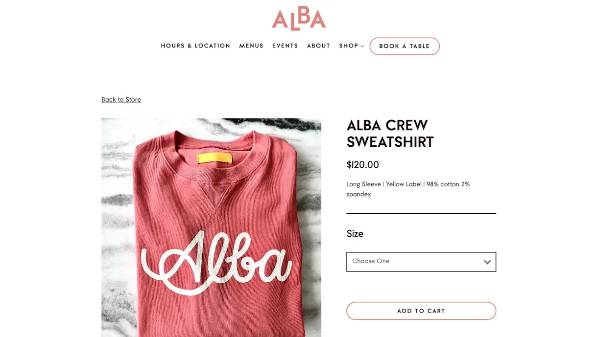 Restaurant-branded merchandise is a great way to let your best customers get your brand out into the world. This stylish top from Manhattan’s Alba leverages a bold, fun wordmark that could just as easily belong to an Italian fashion house as an Italian restaurant.