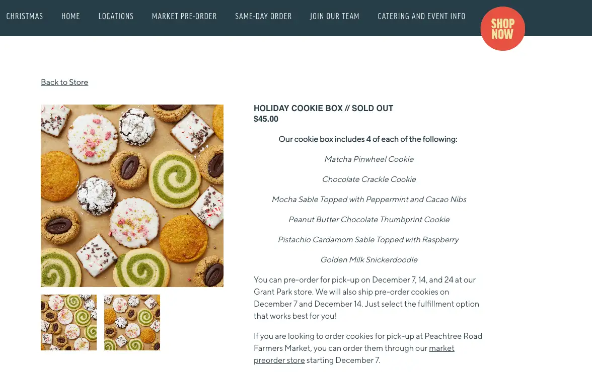 Much like a family gathering brings together people of different shapes, sizes and levels of sweetness, so does a great box of assorted cookies — like this 24-count box of holiday cookies from Atlanta’s Little Tart, which sold out within a few days of its launch.