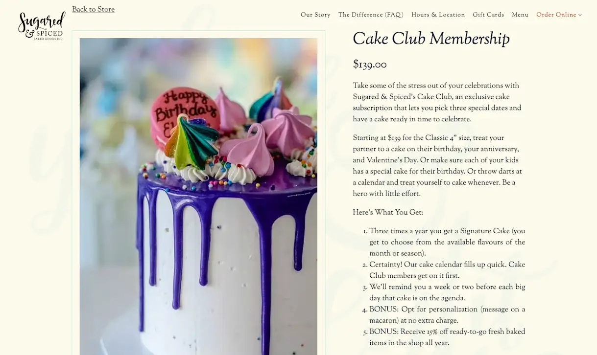 Talk about a gift that keeps on giving. This popular offering from Sugared & Spiced is a “cake subscription” that entitles the holder to 3 cakes per year: for the frequent and organized party planner in your life.