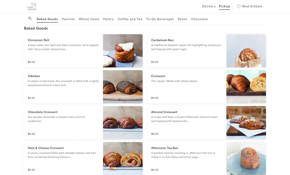 Online Ordering: When choosing an online ordering system, look for a tool that follows e-commerce best practices to maximize conversions. Keep an eye out for an organized navigation, mobile optimization, and a user-friendly interface. Utilize clickable menu items that expand for customization. By streamlining the online ordering process, you can enhance customer satisfaction and increase sales. BentoBox online ordering has a 98% checkout rate on cart additions. Check out how Chicago bakery Lost Larson uses the platform to drive orders.