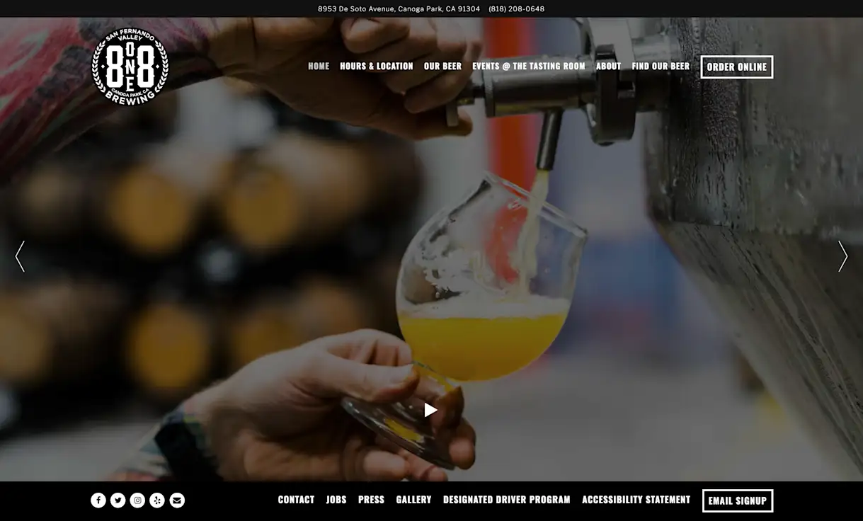 Located in the San Fernando Valley, 8one8 Brewing is focused on creating approachable, true-to-style beer. Visitors to the website can find updated operations information, view the latest beer menus, order six-packs for on-site pickup and even inquire about jobs.