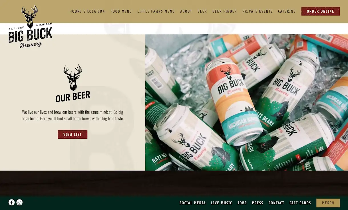 Well-known in the Gaylord, Michigan community, Big Buck Brewery was taken over in 2018 by Cathy and Shawn Smalley, longtime homebrewers, with a vision to make the brewery better than ever. Part of that vision includes a website that highlights all that Big Buck Brewery has to offer. Guests can check out live music schedules, inquire about private and catered events, purchase gift cards and an assortment of merch like t-shirts, hoodies and pint glasses.