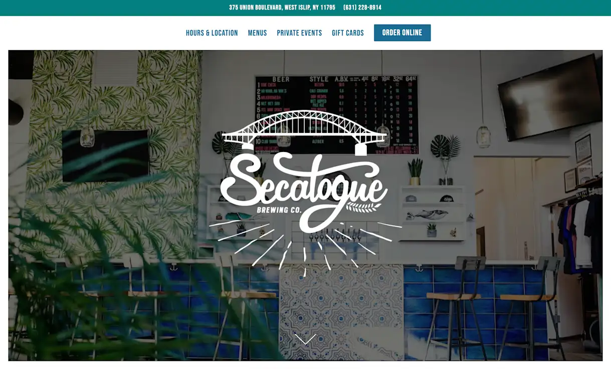 For Long Islanders, Secatogue Brewing Co. is a refuge for tasting a rotation of new brews in a vibrant space. Their website reflects this aesthetic with beautiful imagery of their ocean-themed tasting room. For guests interested in enjoying Secatogue at home, the brewery offers the ability to order four-packs, growlers and more, directly online for pickup.