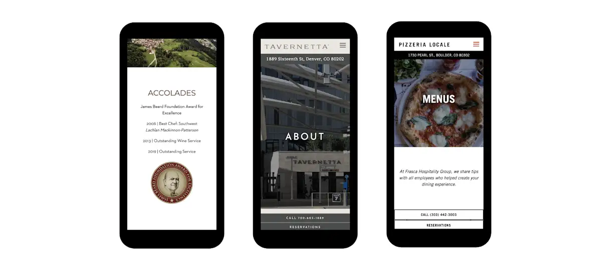 In 2019, Frasca Hospitality Group was a growing, James Beard Award-winning business with two restaurants (Frasca Food and Wine and Pizzeria Locale), a third restaurant opening soon (Tavernetta) and a fourth concept (Sunday Vinyl) in development. However, its relationship with a remote website contractor was not working. As a result, nobody within the group had access to its websites, which meant every update had to go through a third party. Unfortunately, this led to inaccurate information, delayed updates and confused guests.