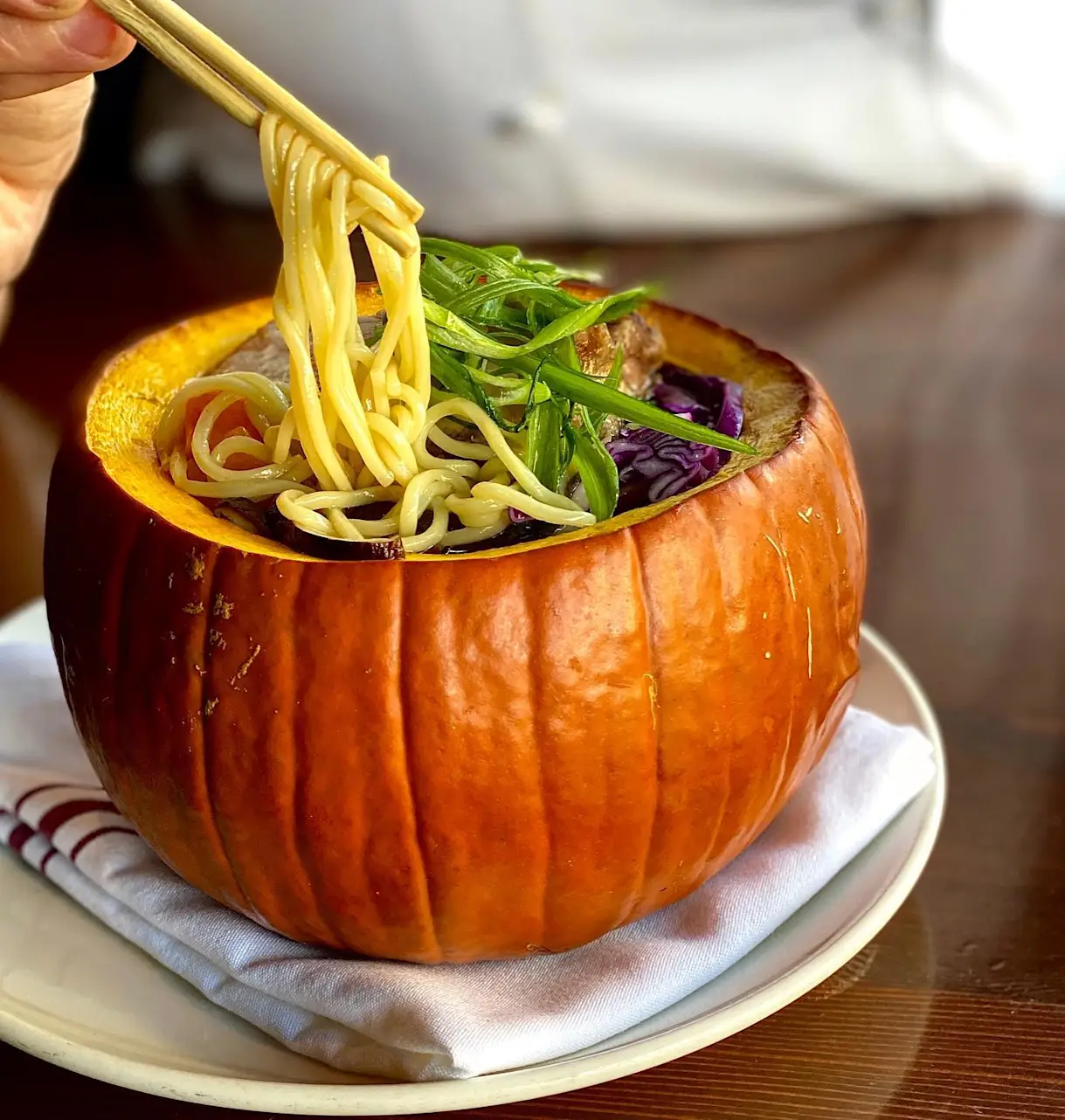 Customers are no strangers to the untraditional serving vessel, like the bread bowl for example. It’s easy to put a spin on this concept with a pumpkin bowl. Here, Lincoln Tavern in South Boston serves its Fall Ramen inside a pumpkin with miso pork broth, spiced pork belly, butternut squash, shiitake mushroom, cabbage and scallion.