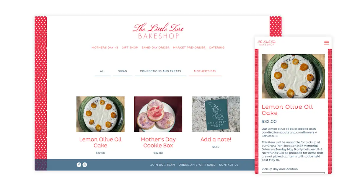 One of Atlanta’s beloved bakeries promotes a few offerings for Mother’s Day, including their Lemon Olive Oil Cake and a Mother’s Day Cookie Box. As a means of driving more visitors to make a purchase, The Little Tart Bakeshop adds a “Mother’s Day <3” tab to the top navigation of the website. This increases orders for visitors looking for seasonal menu offerings.